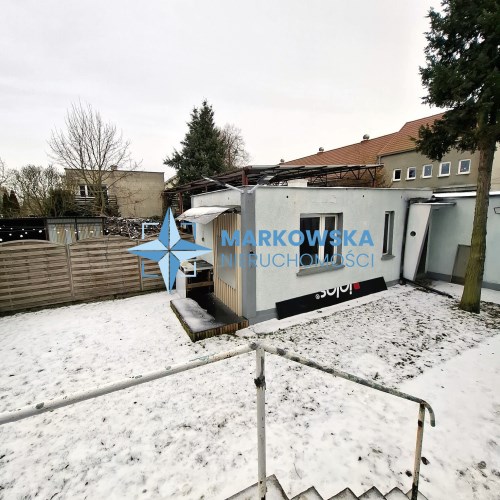 - Murowany garaż z tyłu posesji
