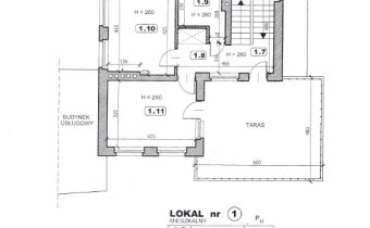 Układ pomieszczeń daje możliwość łatwej adaptacji pod biura, gabinety, kancelarię, usługi medyczne lub kosmetyczne.